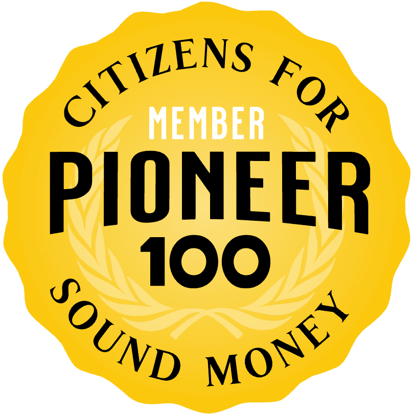 Help the Sound Money cause by becoming an Annual Pioneer 100 member! Get access to the exclusive “Metal Markup” app with information about low premium Gold and Silver bullion deals across North America –only available to Pioneer members.