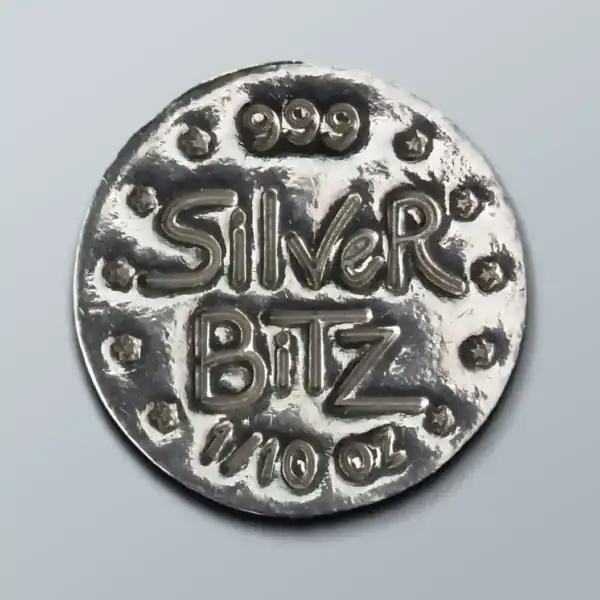 Silver Bitz are compact, stackable rounds of .999 fine silver — engineered for flexibility, trade-readiness, and everyday use. Each piece weighs 1/10 troy ounce and is clearly stamped for weight and purity.